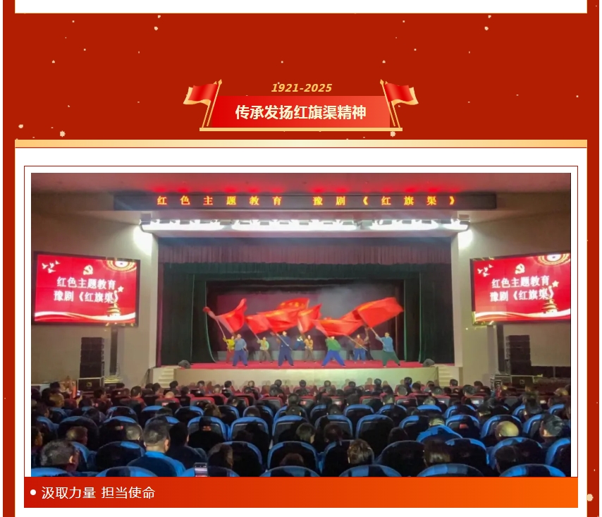 表彰大會后,全體參會人員共同觀看了由黨建共建單位河南豫劇三團(tuán)帶來的豫劇《紅旗渠》,自力更生、艱苦創(chuàng)業(yè)、團(tuán)結(jié)協(xié)作、無私奉獻(xiàn)的紅旗渠精神歷久彌新,大家在欣賞精彩演出的同時,從中汲取澎湃的精神力量。