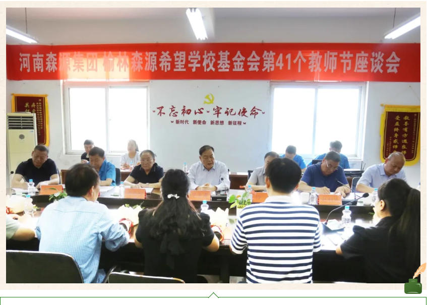 9月10日,在第41個(gè)教師節(jié)到來(lái)之際,河南森源集團(tuán)、榆林森源希望學(xué)校基金會(huì)舉行教師節(jié)座談會(huì),森源集團(tuán)黨委書(shū)記、基金會(huì)理事長(zhǎng)楚金甫,森源集團(tuán)常務(wù)副總裁、基金會(huì)副理事長(zhǎng)楊合嶺,河南森源電氣股份有限公司董事長(zhǎng)、基金會(huì)理事趙中亭,后河鎮(zhèn)黨委政府、后河鎮(zhèn)中心學(xué)校、基金會(huì)及榆林村委相關(guān)領(lǐng)導(dǎo)出席座談會(huì)。